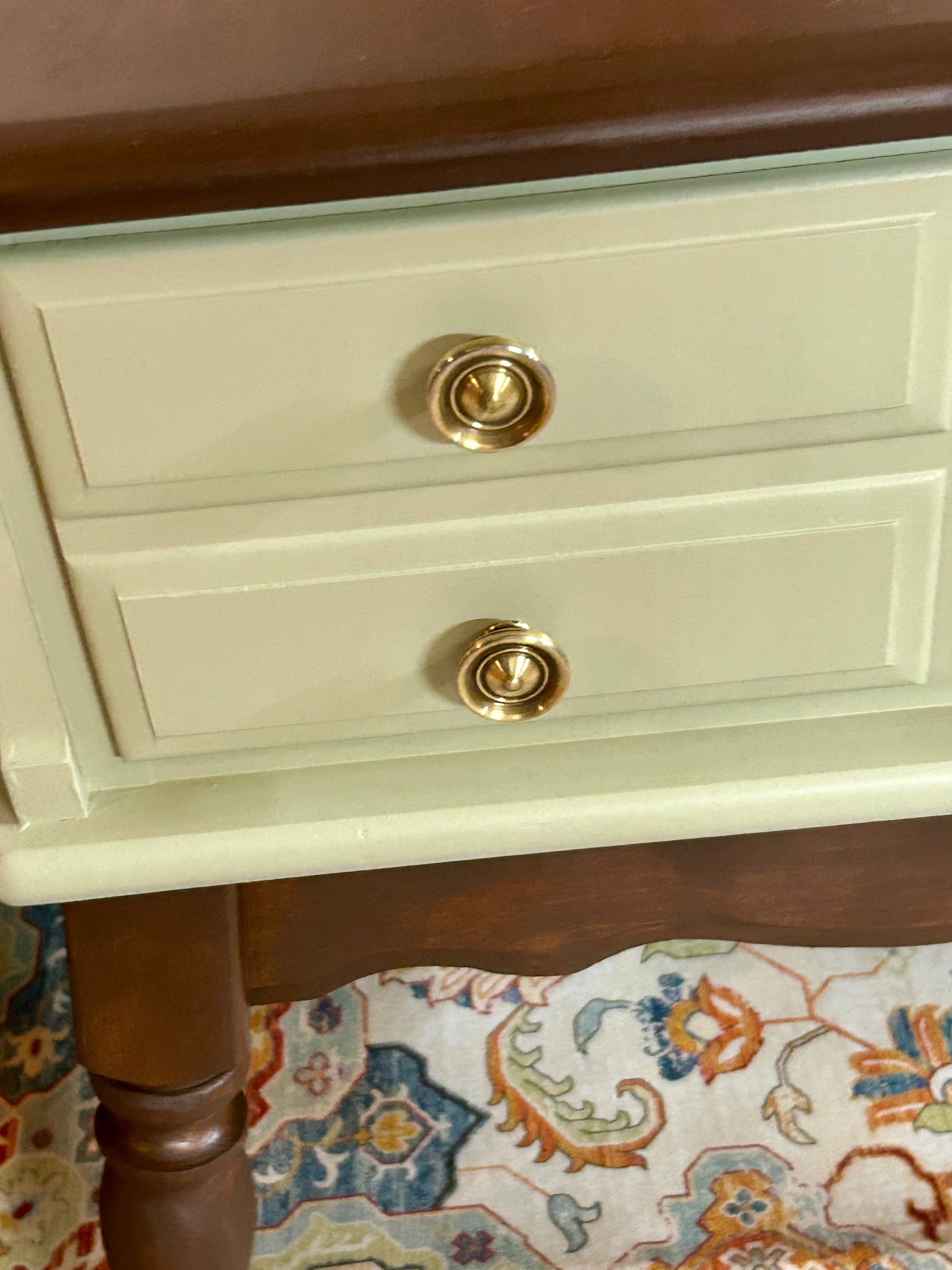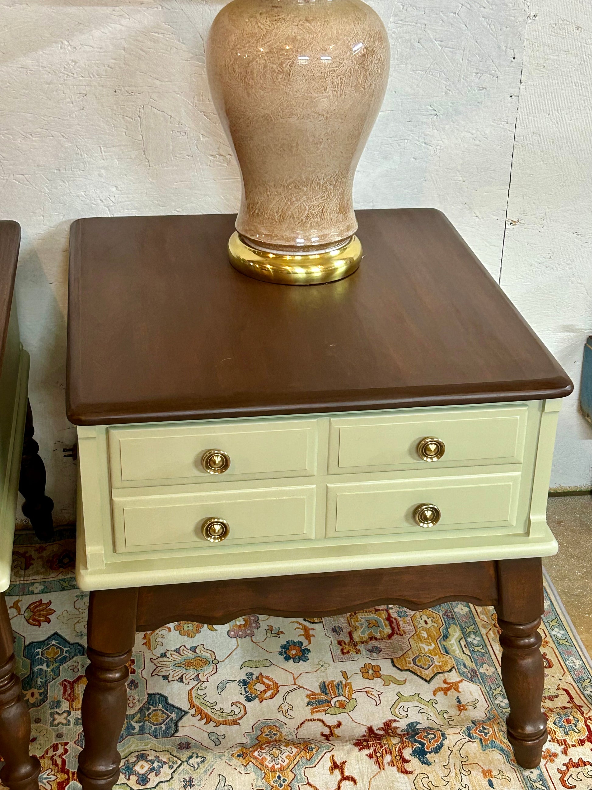 Farmhouse Style Solid Wood End Tables – Sage Green & Tobacco (Set of 2)