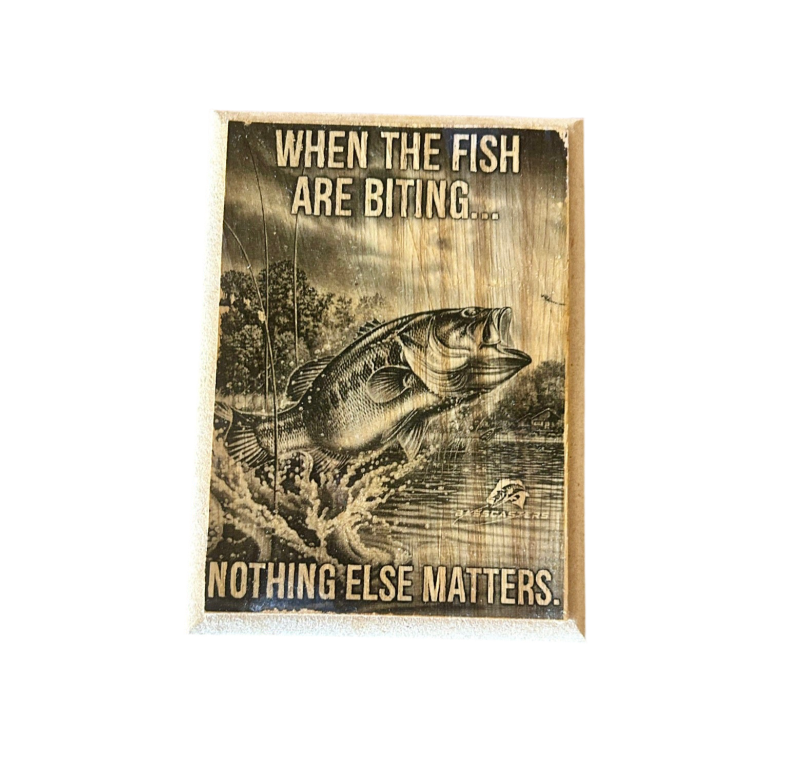 Great gift for any fisherman. Sign reads: When the fish are biting, nothing else matters.